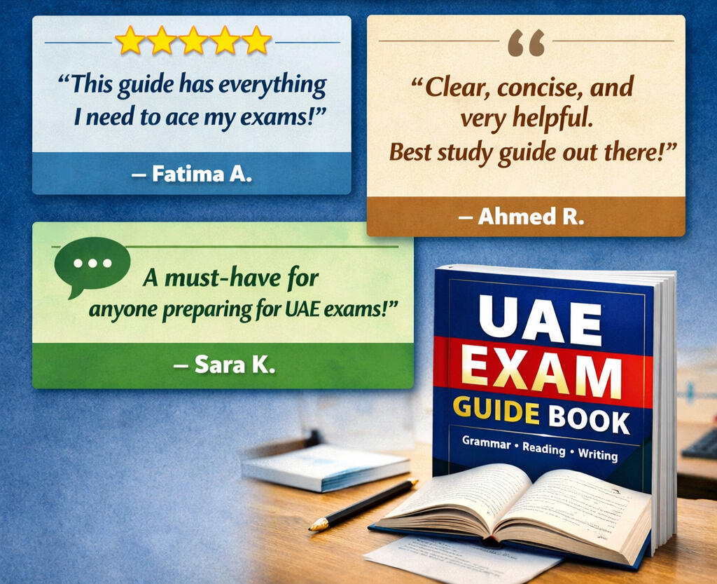 Boost your exam confidence with our UAE Exam Guide Book — your complete path to success in grammar, vocabulary, reading, and writing!